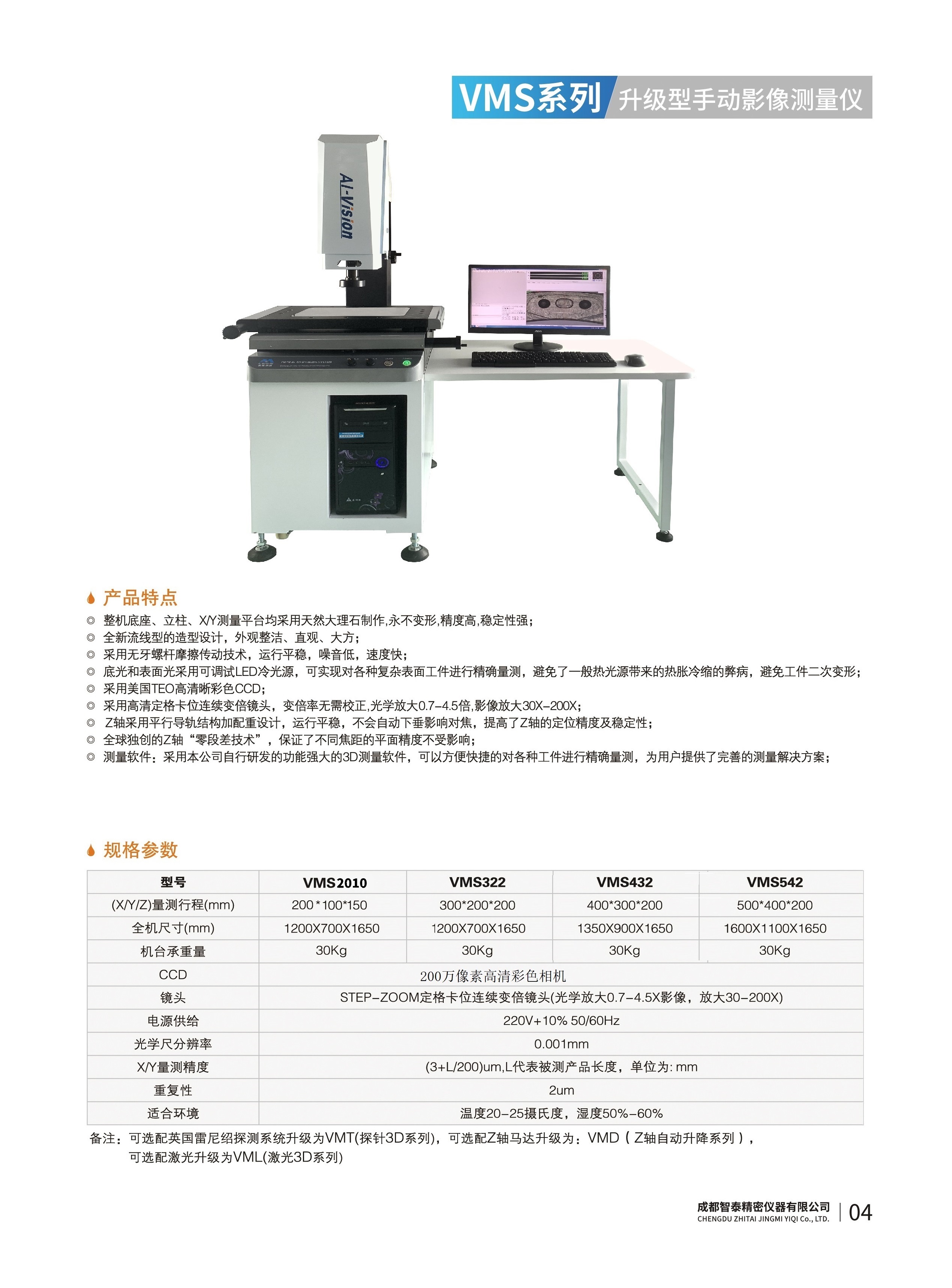成都智泰精密儀器有限公司專注于精密測量儀器,人工智能,智能制造領(lǐng)域,專業(yè)從事智能視覺自動(dòng)化檢測解決方案的貿(mào)易型企業(yè)。公司成立于2011年,位于天府之國成都,現(xiàn)有行業(yè)精英十余人,辦公倉儲(chǔ)面積200余平米。 公司主要產(chǎn)品為精密光學(xué)影像測量儀,精密輪廓形狀測量儀,精密機(jī)器人定位系統(tǒng),精密智能視覺尺寸檢測儀器,精密表面缺陷智能檢測設(shè)備,工業(yè)工程特種機(jī)器人。 公司憑借過硬的技術(shù)實(shí)力和產(chǎn)品方案,率先進(jìn)入智能視覺自動(dòng)化檢測領(lǐng)域,推廣以精密智能視覺自動(dòng)化檢測為基礎(chǔ)的機(jī)器人自動(dòng)化應(yīng)用,公司不斷整合上下游的資源,擁有巨大的全產(chǎn)業(yè)鏈優(yōu)勢。客戶群體覆蓋了我國精密制造業(yè)的多數(shù)領(lǐng)域,包括航空、航天、軍工、汽車、新能源、光伏、食品,精密電子、精密機(jī)械、模具、PCB、LCD、五金、塑膠、醫(yī)療、教育、計(jì)量及科研院所等行業(yè)。 公司創(chuàng)新的產(chǎn)品能滿足生產(chǎn)與制造行業(yè)客戶的要求,訓(xùn)練有素的工程師能及時(shí)提供多種技術(shù)服務(wù),如解...